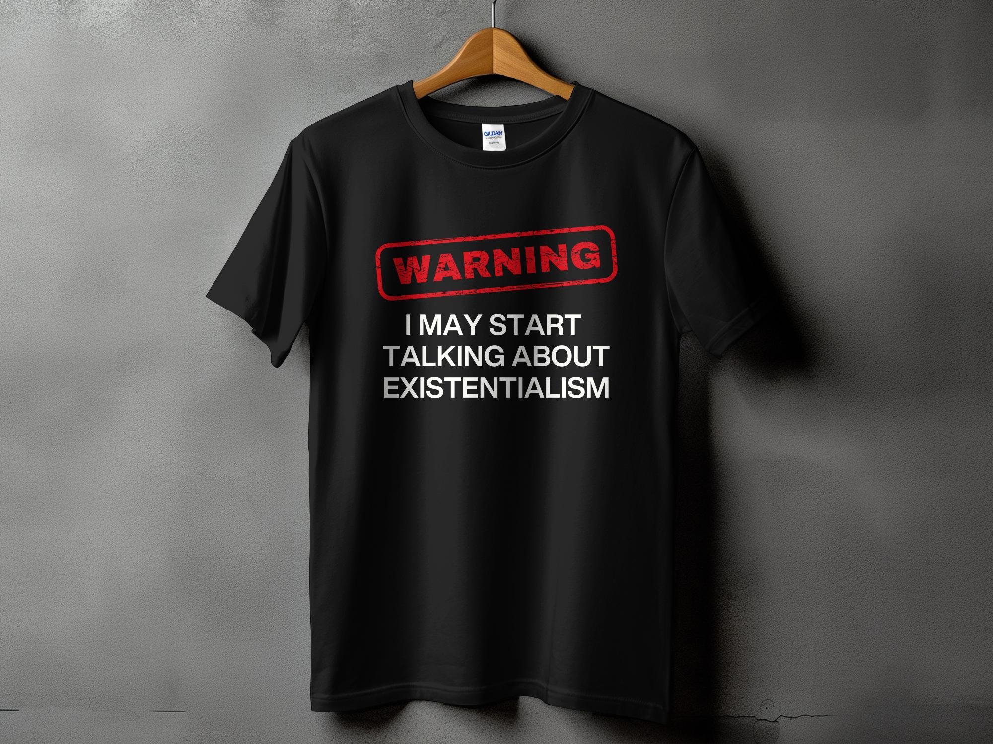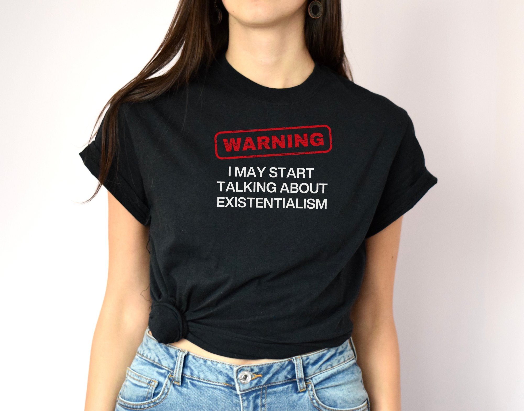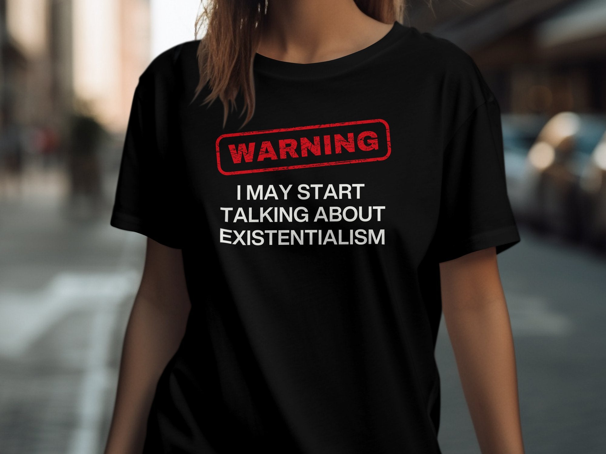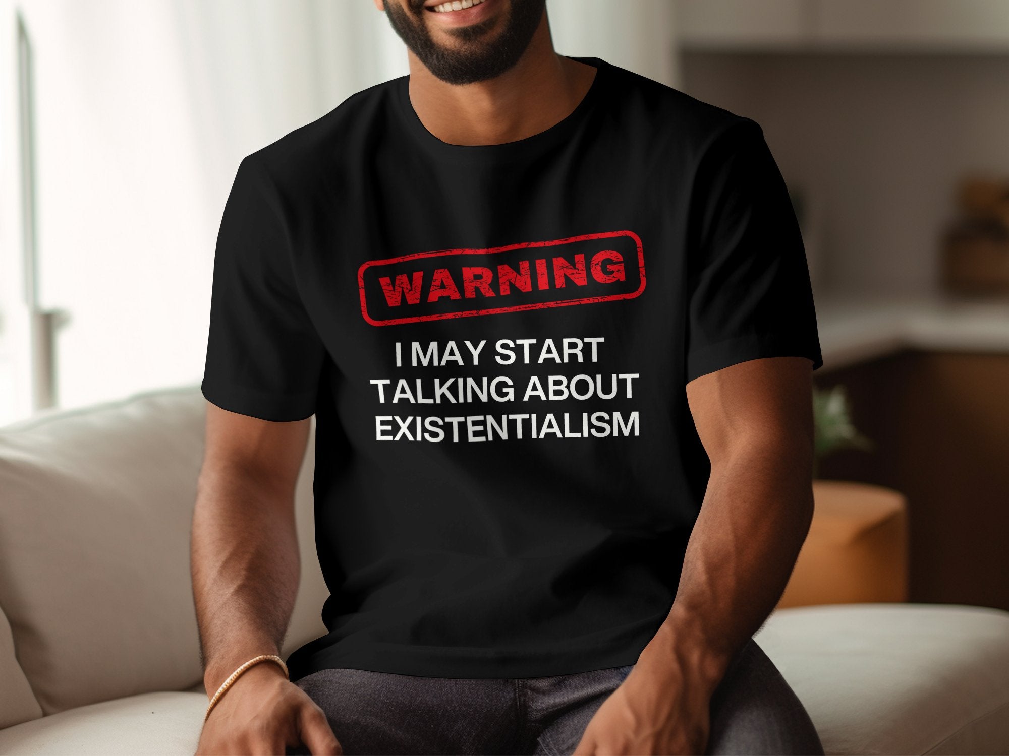 Venture into the depths of human existence with our captivating "Warning: I May Start Talking About Existentialism" t-shirt. This compelling garment is designed for those who are intrigued by the philosophical inquiry into the nature of existence, freedom, and choice. Perfect for existentialists, philosophers, and anyone who ponders the meaning of life, personal responsibility, and the essence of being. This shirt is an ode to the courage it takes to face the absurdity of life head-on and to forge one's path with authenticity and integrity.
